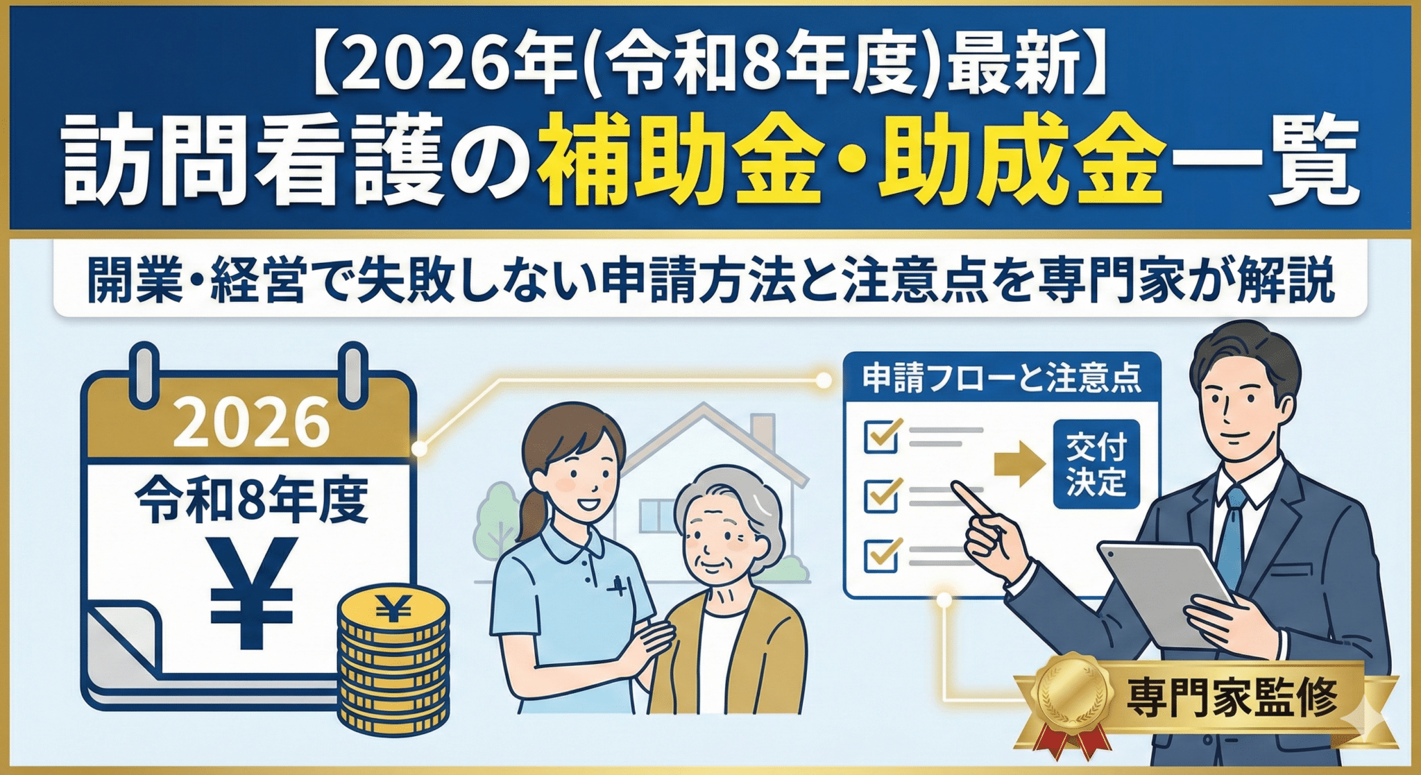 【2026年(令和8年度)最新】訪問看護の補助金・助成金一覧|開業・経営で失敗しない申請方法と注意点を専門家が解説